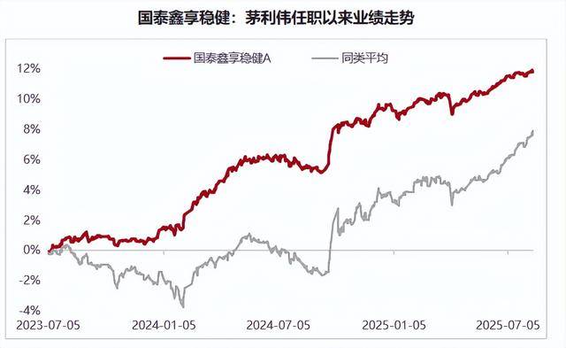 同时,茅利伟具有丰富的固收+产品管理经验,以代表产品国泰鑫享稳健A为例,Wind、国泰海通证券数据显示,截至2025年8月15日,该基金最近2年收益率11.15%,排名同类前25%,自基金经理茅利伟2023年7月5日开始管理以来收益率11.85%,还荣获国泰海通证券三年期五星评级。