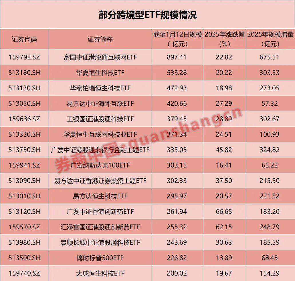 2026-01-15华体会,华体会体育官网,华体会体育,华体会体育APP下载随着全球资本市场共振上涨,资金对海外市场的热情也助推跨境型ETF规模持续攀高。据统计,截至1月13日,跨境型ETF规模总量达到1.0008万亿元人民币,这也是历史上首次突破万亿规模大关。