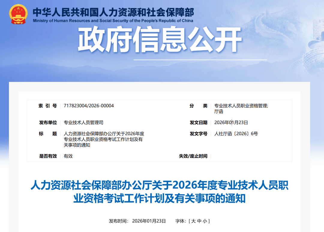 2026-02-23华体会,华体会体育官网,华体会体育,华体会体育APP下载人力资源社会保障部办公厅关于2026年度专业技术人员职业资格考试工作计划及有关事项的通知