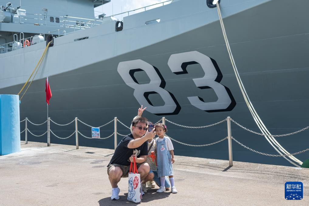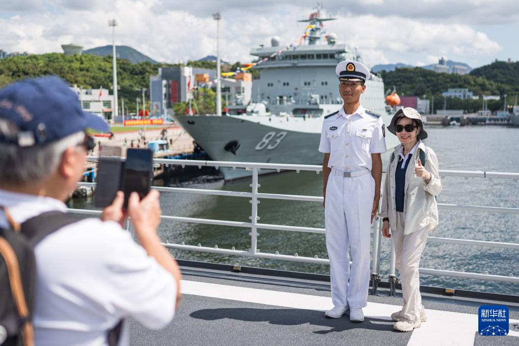 两舰抵达当日,香港学生曹欣悦登上军舰参观。听完讲解员的介绍,10岁的她兴奋地告诉记者:“在一望无际的大海上,舰艇居然还能收到电视信号,太神奇了!这说明国家的科技很厉害。长大以后我想从事和科技有关的工作。”
