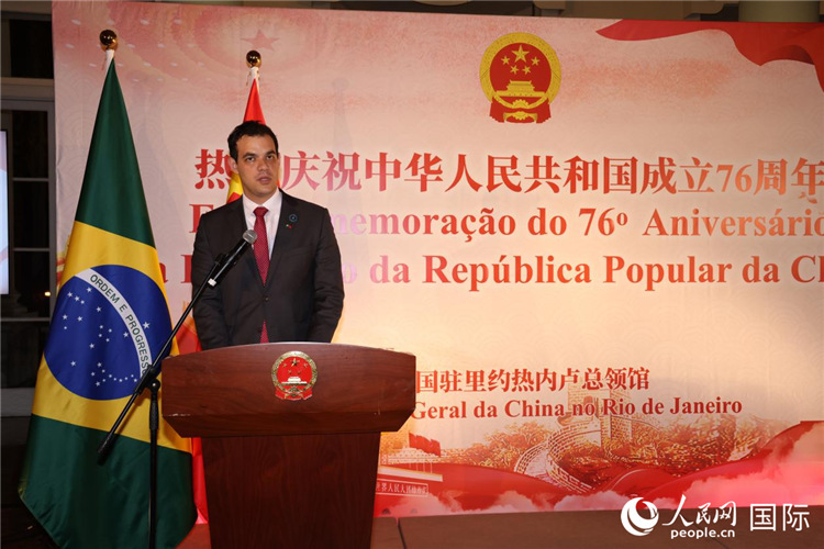 伊兰·库珀斯坦代表里约热内卢市政府对中华人民共和国成立76周年表示热烈祝贺,对中国在社会经济发展和科技创新方面取得的辉煌成就高度赞赏。在致辞中,库珀斯坦用中文表达了对中国文化和语言的热爱,并深情回忆了在中国工作和生活的经历,表示里约市政府高度重视与中国的友好合作,把发展同中国的伙伴关系视为推动城市进步的重要优先事项。他相信里约与中国的友谊必将继续深化,在文化、科技与可持续发展等领域结出更多硕果。