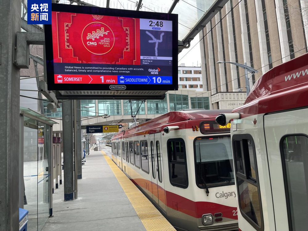 埃德蒙顿和卡尔加里同在加拿大艾伯塔省,埃德蒙顿是该省省会,卡尔加里是加拿大第三大城市。两个城市的轻轨系统,是北美最繁忙的轻轨系统之一。本次宣传片由中国驻卡尔加里总领馆投放,总台春晚宣传片贯穿其中,通过两城轻轨站内近300块屏幕,立体式展现中国的春节、春晚文化。视频在当地时间除夕和初一连续两日播放,预计触达受众约80万人次。