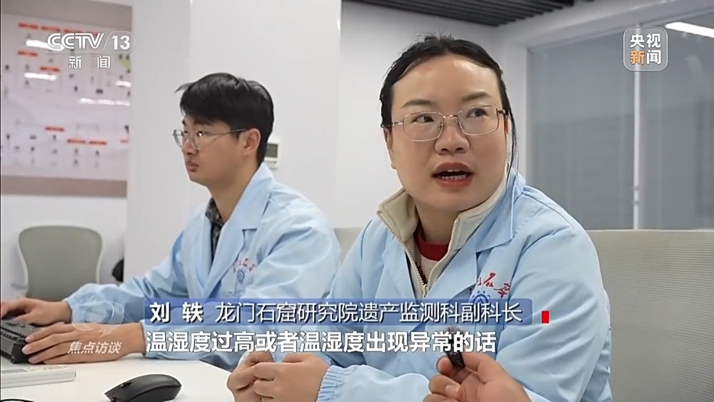龙门石窟研究院遗产监测科副科长 刘轶:比如当我们发现温湿度过高或者温湿度出现异常,或者像振动、裂隙出现异常,我们就及时到现场去看看是不是真出现这些问题了,然后及时采取保护措施。
