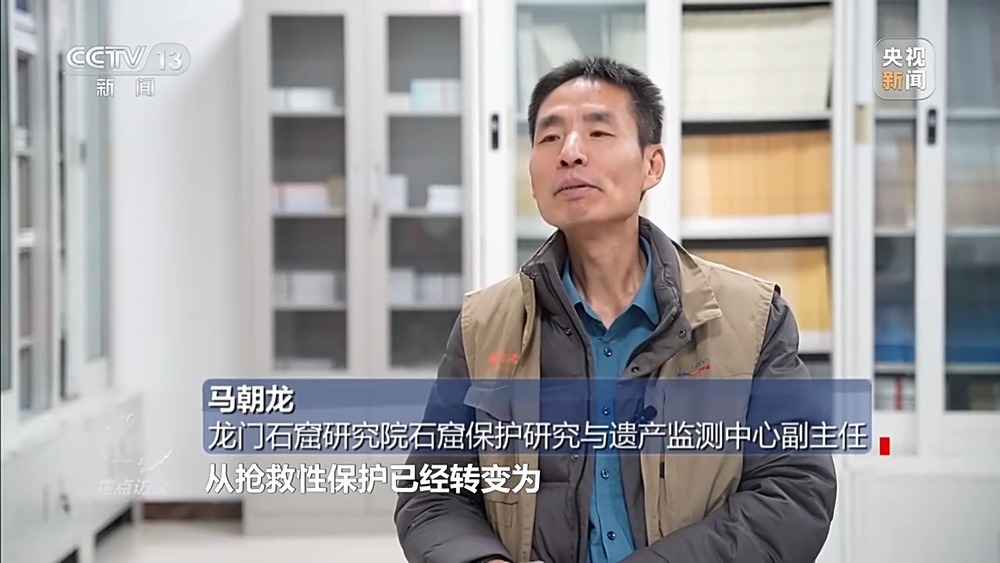 龙门石窟研究院石窟保护研究与遗产监测中心副主任 马朝龙:目前,我们的工作重心从抢救性保护已经转变为预防性保护,比如监测体系的建立,我们能及时发现问题、及时提出问题和解决这些问题。
