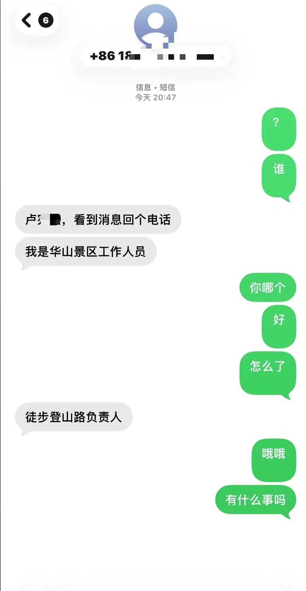 记者从华山景区获悉确有此事,此前游客有类似情况时,他们也会致电询问详情。
