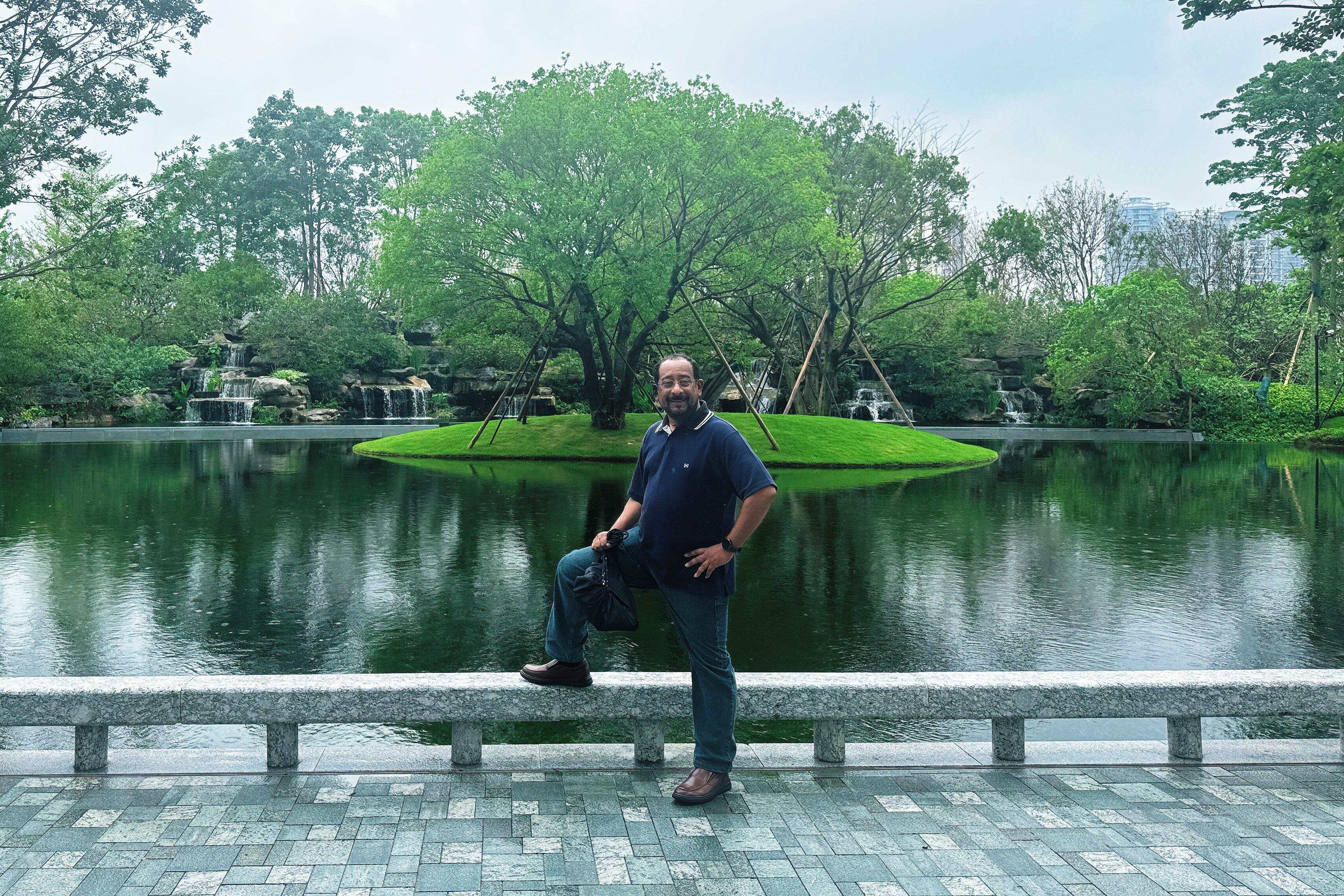从OPPO总部大楼走出,天空飘起蒙蒙细雨。楼外的园林景观吸引了数位阿拉伯国家媒体考察团成员驻足拍照。其中一位请我帮忙用手机留影。我用略显生疏的英语与他交流,拍完后,他向我真诚致谢,我也送上美好祝福。这一细微而温暖的瞬间,不仅有我对此次际遇的紧张,更有我对来自远方的客人在中国感到开心的欣喜。