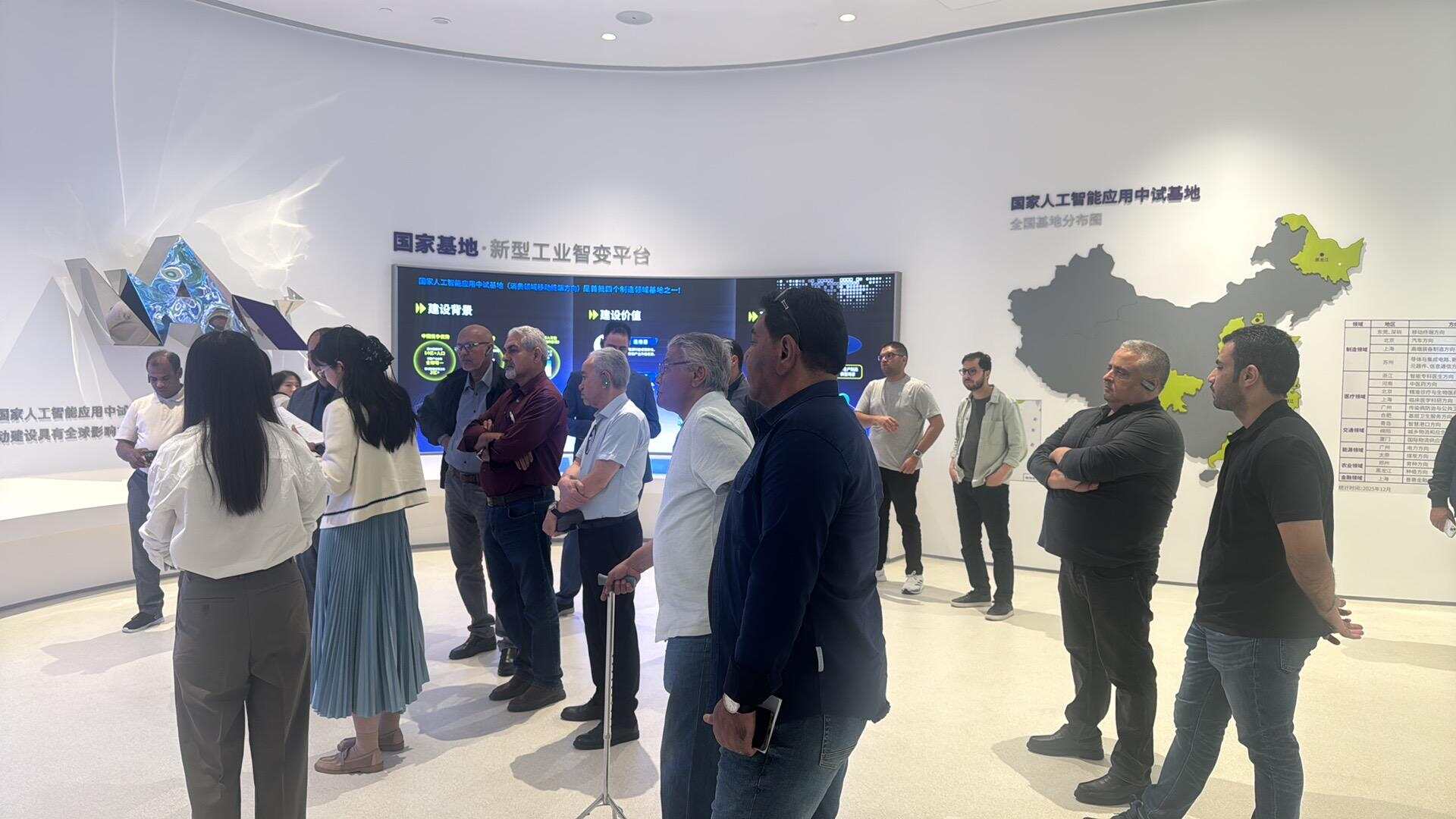 上午,考察团首站来到国家人工智能应用中试基地。成员们近距离观摩了人工智能技术从研发到规模化落地的全链条体系及多元化应用场景,并详细了解了机器人在智能制造、智慧服务等领域的创新成果。